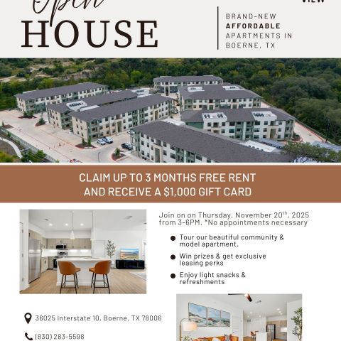 Discover the essence of simple living and refined comforts at Bluff View. Nestled along the tranquil Frederick Creek in Boerne, Texas, our community offers a perfect blend of natural beauty and modern conveniences. Bluff View offers a range of layouts, from well-appointed 1-bedroom apartments to expansive 3-bedroom homes, with floor plans ranging from 731 to 1,179 square feet. Discover elevated living in a community where timeless style meets modern comfort.