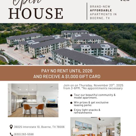 Bluff View provides a tranquil retreat from the hustle and bustle of the big city. Just 30 miles southeast, San Antonio’s amenities are within easy reach, while Boerne offers convenient access to I-10 along with various local shopping, dining, and outdoor recreation. Residents enjoy the perfect balance of small-town living with easy access to urban life.